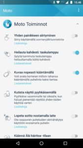 Motorola jatkaa erikoista kikkailuaan näyttökokojen kanssa ja tällä kertaa suunta on jälleen ylöspäin. Edeltäjämallin 5,2-tuumaisesta näytöstä ollaan noustu kolme kymmenystä 5,5 tuumaan. Kuluttajat ovat varmasti ratkaisusta kahta mieltä. Näyttötekniikka on joka tapauksessa pysynyt samana kuin edeltäjämallissa, eikä tarkkuuskaan ole muuttunut. Näytön ja ulkomittojen välinen suhde on keskitasoa tässä näyttökokoluokassa ja selvästi parempi kuin pienemmässä sisarmallissa.