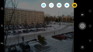 Kamerasovelluksen käyttöliittymä on pitkälti tuttu Motorolan aiemmista vuoden 2017 malleista ja se on melko looginen ja helppokäyttöinen. Pienenä uudistuksena kuvaustilavalikosta (oikeassa ylänurkassa) näkyy videokuvaukseen liittyvät tilat vain videokuvauksen ollessa aktivoituna. Manuaalikuvaustila tarjoaa säätömahdollisuudet tarkennukselle, valkotasapainolle, suljinajalle (1/6000 – 1/1,5 s), herkkyydelle (ISO 100 – 3200) sekä valotuksen kompensoinnille (-2…+2), joten säädöt ovat positiivisen kattavat tämän hintaluokan puhelimeen.