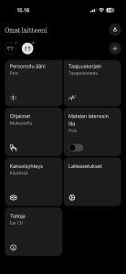 Tänä vuonna taajuuskorjaimeen on lisätty myös tuki omien taajuuskorjausprofiilien jakamiseen. Jakovälilehdeltä löytyy Nothingin itse suosittelemia profiileja, minkä lisäksi käyttäjien jakamia profiileja voi ladata valmistajan Playground-alustalta. Ominaisuus on varsin hyvä lisä, sillä se mahdollistaa valmiiden profiilien etsimisen heillekin, keille vapaa taajuuskorjain tuntuu liian haastavalta lähtökohdalta. Mukavana lisänä taajuuskorjausprofiileja voi jakaa myös QR-koodeina, mikä on todella näppärää.