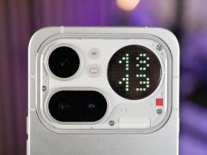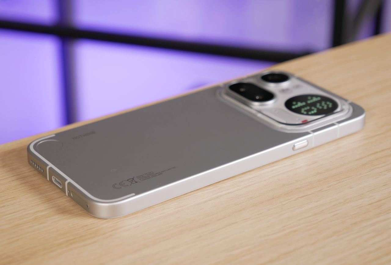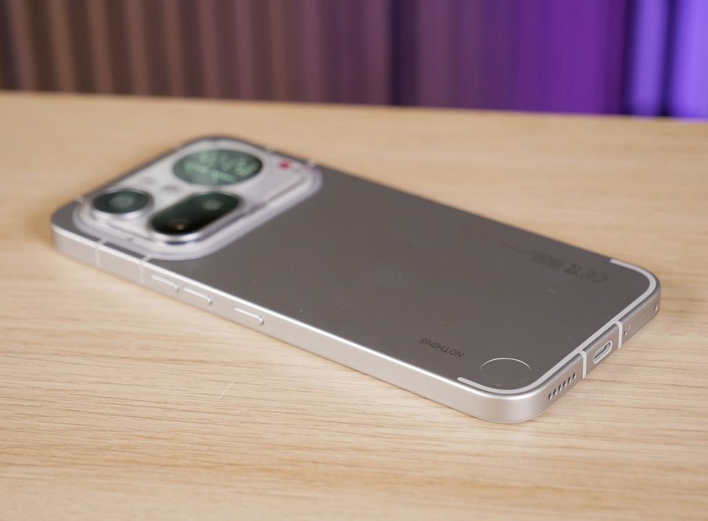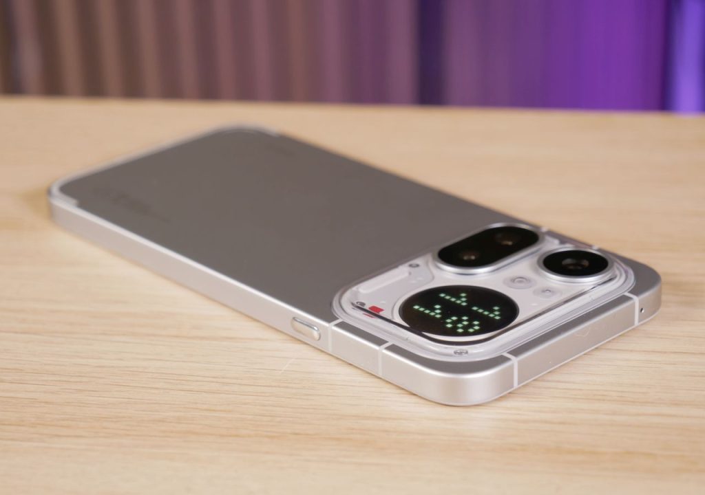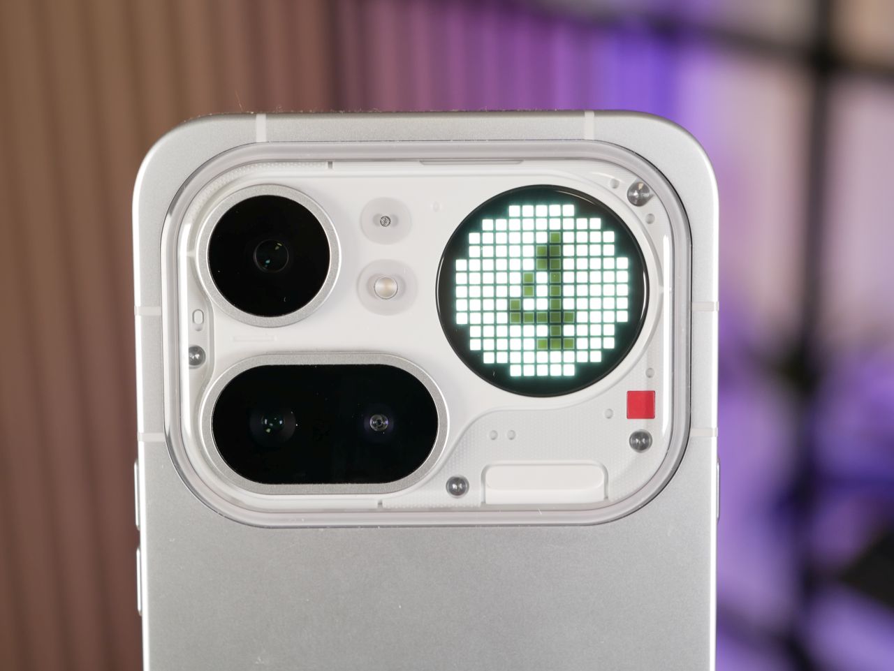 Edeltäjämallin tapaan takakuoren yläosan kamerasaareke on melkoinen katseenvangitsija, vaikka design on muuttunut varsin merkittävästi. Saarekkeen sijainti on symmetrinen, joten puhelin ei pääse keinumaan pöydällä juurikaan. Kamerat, salama ja mikrofoni sijaitsevat kohouman vasemmassa puoliskossa ja Glyph Matrix -näyttö oikeassa reunassa. Kohouman läpinäkyvä osa on muovia, joten sen kestävyys ja etenkin naarmuuntumisherkkyys pidemmällä aikajänteellä on kysymysmerkki. Maininnan arvoisena yksityiskohtana Glyph Matrix -näytön alapuolella sijaitseva punainen pieni neliö toimii videokuvatessa punaisena merkkivalona, joka kertoo kuvaamisen olevan käynnissä.