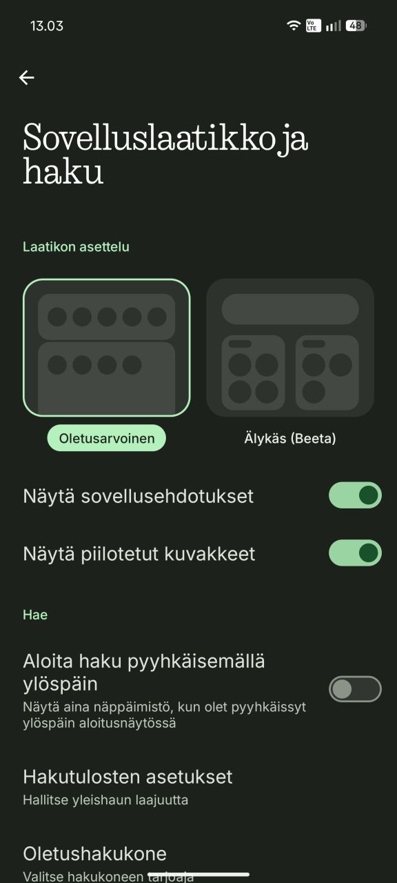 - Kevyesti kustomoitu, vakio-Androidia mukaileva, sulavatoiminen ohjelmisto