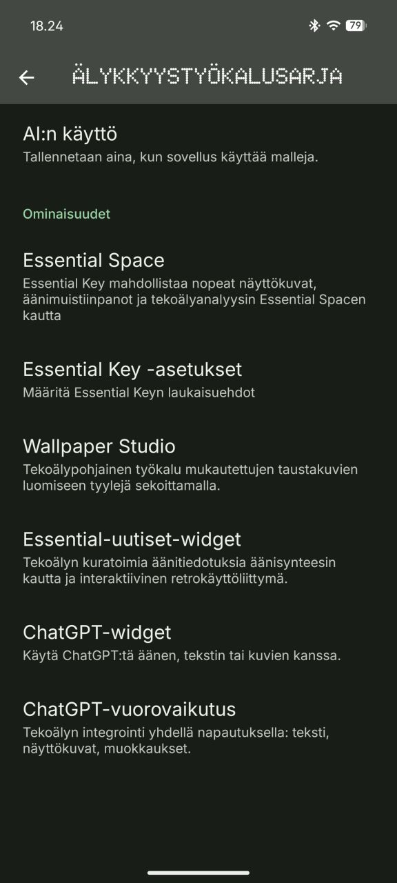 Nothing on päivittänyt tekoälytoimintojensa valikoimaa muutamalla lisäyksellä, jotka löytyvät kaikki koottuna asetusvalikon ”älykkyystyökalusarja”-alavalikosta, mutta keskiössä on edelleen Essential Key -painikkeesta operoitava Essential Space.