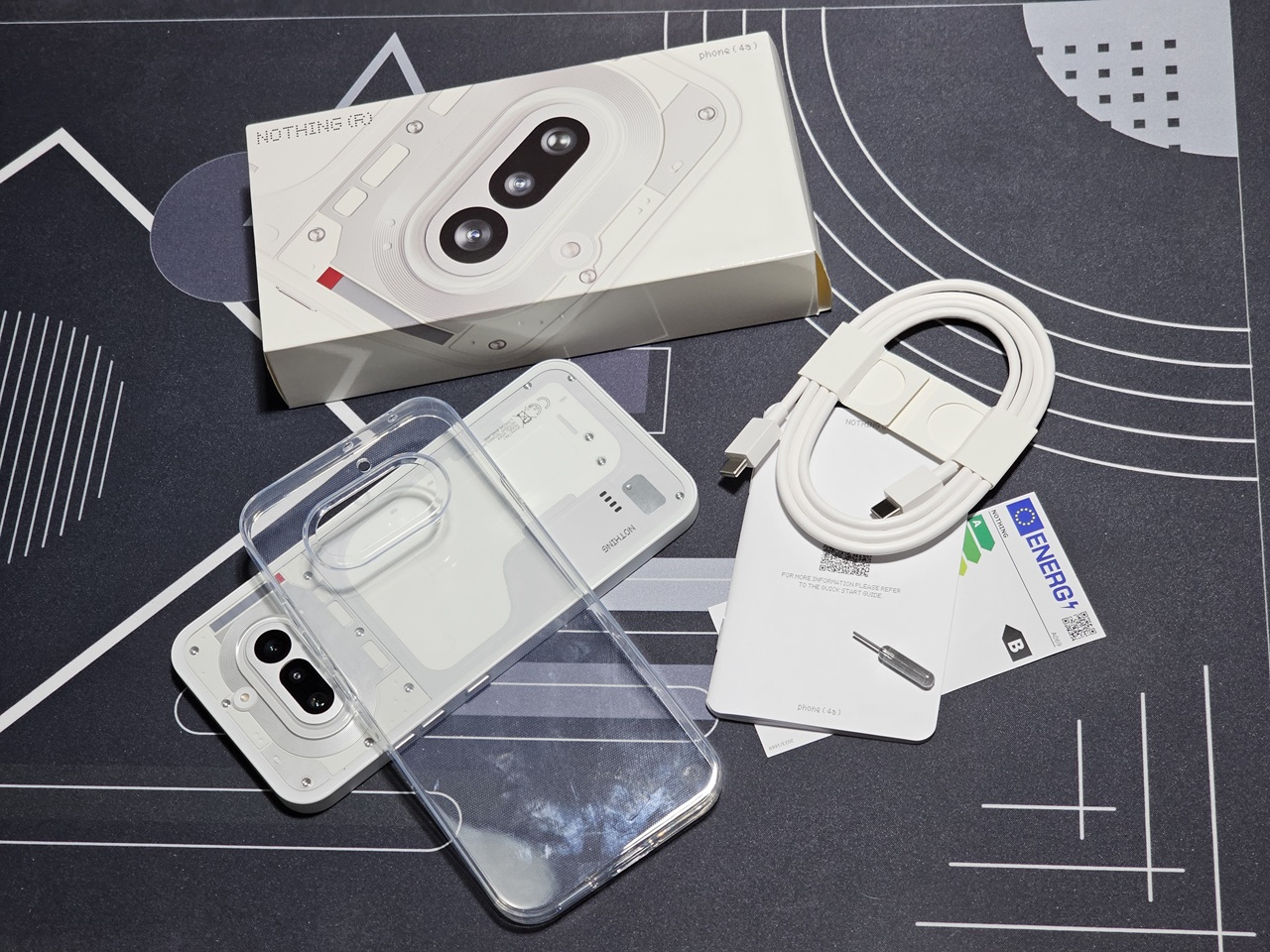 Phone (4a) toimitetaan edeltäjänsä tavoin valkoisessa pahvipakkauksessa, jossa komeilee lähikuva puhelimesta. Laatikosta löytyy itse laitteen lisäksi ohjevihkoset, SIM-korttikelkan avaustyökalu, USB-C–USB-C-mallin latausjohto sekä positiivisena yllätyksenä kirkas ja hyvin istuva suojakuori, jollaista ei toimitettu Phone (3a):n mukana.