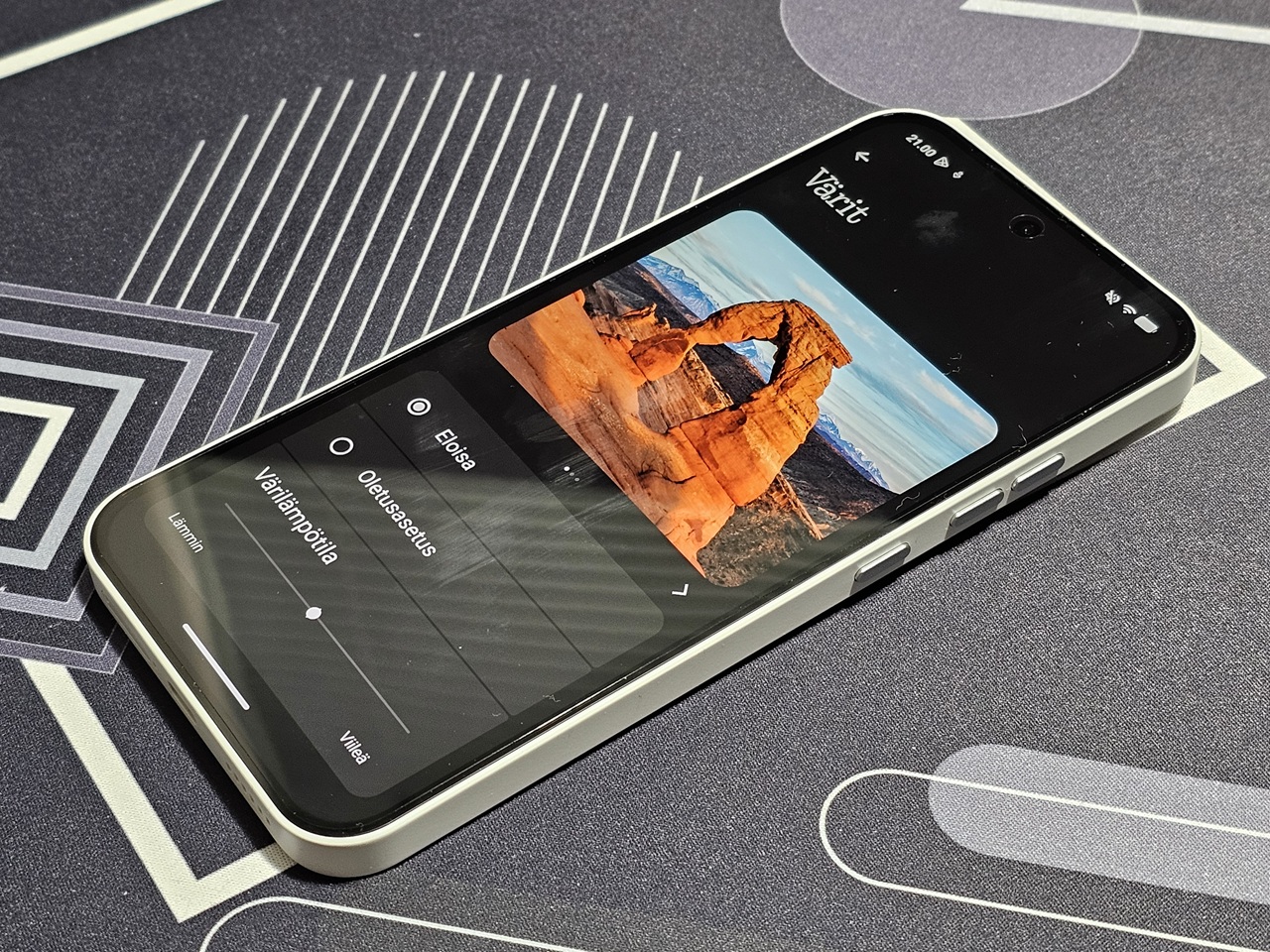 Puhelimen AMOLED-näyttö on laadukas, laitteen päivittäiskäyttö on sulavaa ja NothingOS 4.1 toimii nopeasti ja pääosin moitteettomasti, joskin pientä nikottelua esiintyi välimuistiin tallennettujen sovellusten avaamisessa. Ohjelmistopäivitystuki ei ole valitettavasti viime vuodesta parantunut, sillä käyttöjärjestelmää ja tietoturvaa luvataan päivittää edelleen 3 & 6 vuoden ajan. Muutenkaan mitään kovin merkittäviä uudistuksia Phone (4a) ei tarjoa edeltäjäänsä nähden, vaikka pientä päivittelyä siellä sun täällä onkin tehty ja takaosan kamerasaarekkeen vieressä sijaitseva Glyph-valopalkki on nyt hieman monipuolisempi.