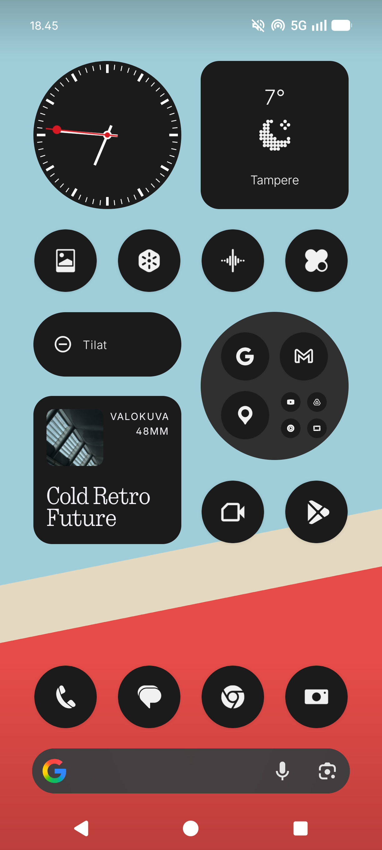 Phone (4a):n ohjelmistopuolella pyörii uusi NothingOS 4.1 -käyttöliittymä, joka toimii Android 16:n päällä. Viime vuoden NothingOS 3.1:stä ja Android 15:stä on siis tultu pykälä ylöspäin. Käyttöliittymän ulkoasu on edelleen hyvin tunnistettavissa Nothingin käsialaksi pelkistettyine kuvakkeineen aloitusnäytössä, vaikka myös perinteisempiä Android-kuvakkeita voi halutessaan käyttää. Versio 4.1 ei eroa valtavasti 3.1:stä – tarjolla on esimerkiksi monipuolisempia lukitusnäyttömuokkauksia ja uudistettu tilarivi akun varaukselle ja verkkojen kuuluvuudelle. Nothingin ohjelmistopäivitys ei ole harmillisesti viime vuodesta parantunut lainkaan, vaan tarjolla on edelleen 3 & 6 vuoden päivitykset Android-versioille ja tietoturvalle, mikä on kuitenkin tässä hintaluokassa ihan mukiinmenevä, joskaan ei paras suoritus.
