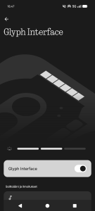 Tuoreimpaan NothingOS:ään on integroitu myös uusia Glyph-valojen ominaisuuksia, joilla Nothingin valttikorttia pyritään muuttamaan entistä funktionaalisemmaksi, mutta toteutuksesta jää silti hieman väkinäinen vaikutelma, eikä se oikeastaan tunnu aidosti hyödylliseltä ominaisuudelta. Hyviäkin uudistuksia toki on, sillä uusi Glyph-valopalkki muodostuu nyt 63 yksittäisestä Mini-LED-valosta, jotka lisäävät valoefekteihin tarkkuutta ja monipuolisuutta aiempaan nähden. Esimerkiksi eri soittoäänille voi nyt valita mieleisensä valoshow’n ja valot voi säätää näyttämään esimerkiksi äänenvoimakkuuden tasoa tai niihin voi konfiguroida vaikkapa ajastimen, jolloin valopalkki hupenee ajan kuluessa. Glyph-ilmoituksiin voi myös sitoa ilmoituksia haluamiltaan yhteystiedoilta ja sovelluksilta. Kolmansien osapuolten sovelluksista esimerkiksi Uber tukee Glyph-valoja, jolloin niiden avulla voi seurata tilatun kyydin edistymistä.