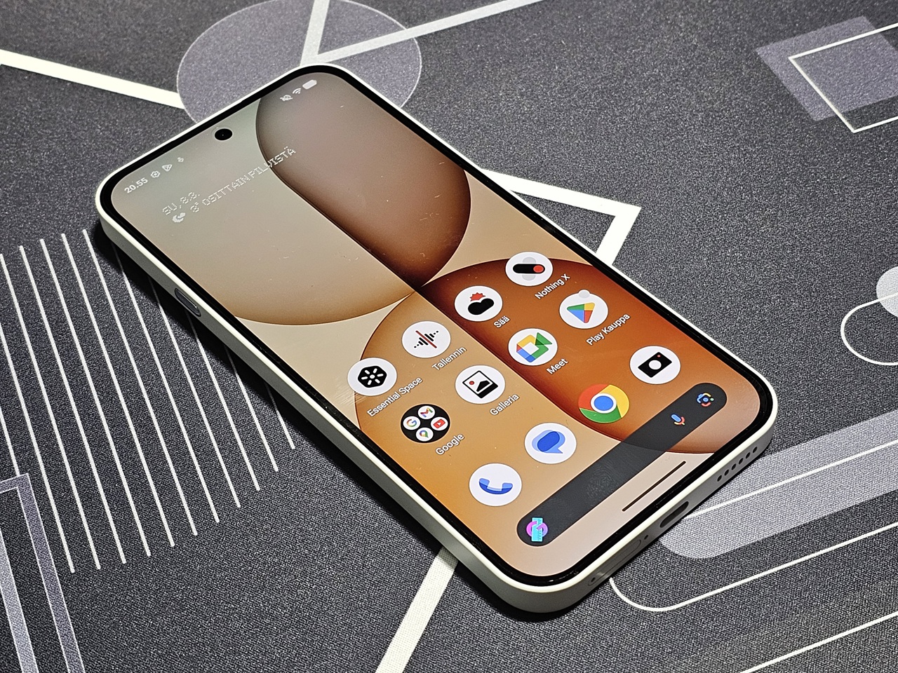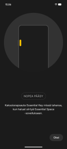 Toiminto osasi lajitella muistiinpanot esimerkiksi sellaisiin, joissa on jokin huomautus (kuten kellonaika/päivämäärä), tai yksinkertaisesti sen perusteella, missä sovelluksessa näyttökuva oli otettu. Suomen kielen tunnistus äänitallennemuistiinpanoissa on edelleen hieman hutiloivaa, ellei puhu erittäin selkeäsi ja kuuluvasti. Nothing-tilille kirjautuneena Essential Spacen kerrotaan tarjoavan parhaan kokemuksen, mutta koko paketti toiminee edelleen varmimmin englanniksi ja suomen kieli jättää paljon toivomisen varaa. Helppokäyttöisenä ”muistilappusovelluksena” se kuitenkin ajaa hyvin asiansa. NothingOS:ssä on tarjolla myös ”Essential-haku”, jonka kautta puhelimesta voi hakea tekoälyavusteisesti (käyttöoikeuksien annon jälkeen) esimerkiksi viestejä, kuvia ja yhteystietoja yhden hakukentän avulla. Essential-hakuun voi myös liittää haluamansa internetin hakukoneen.