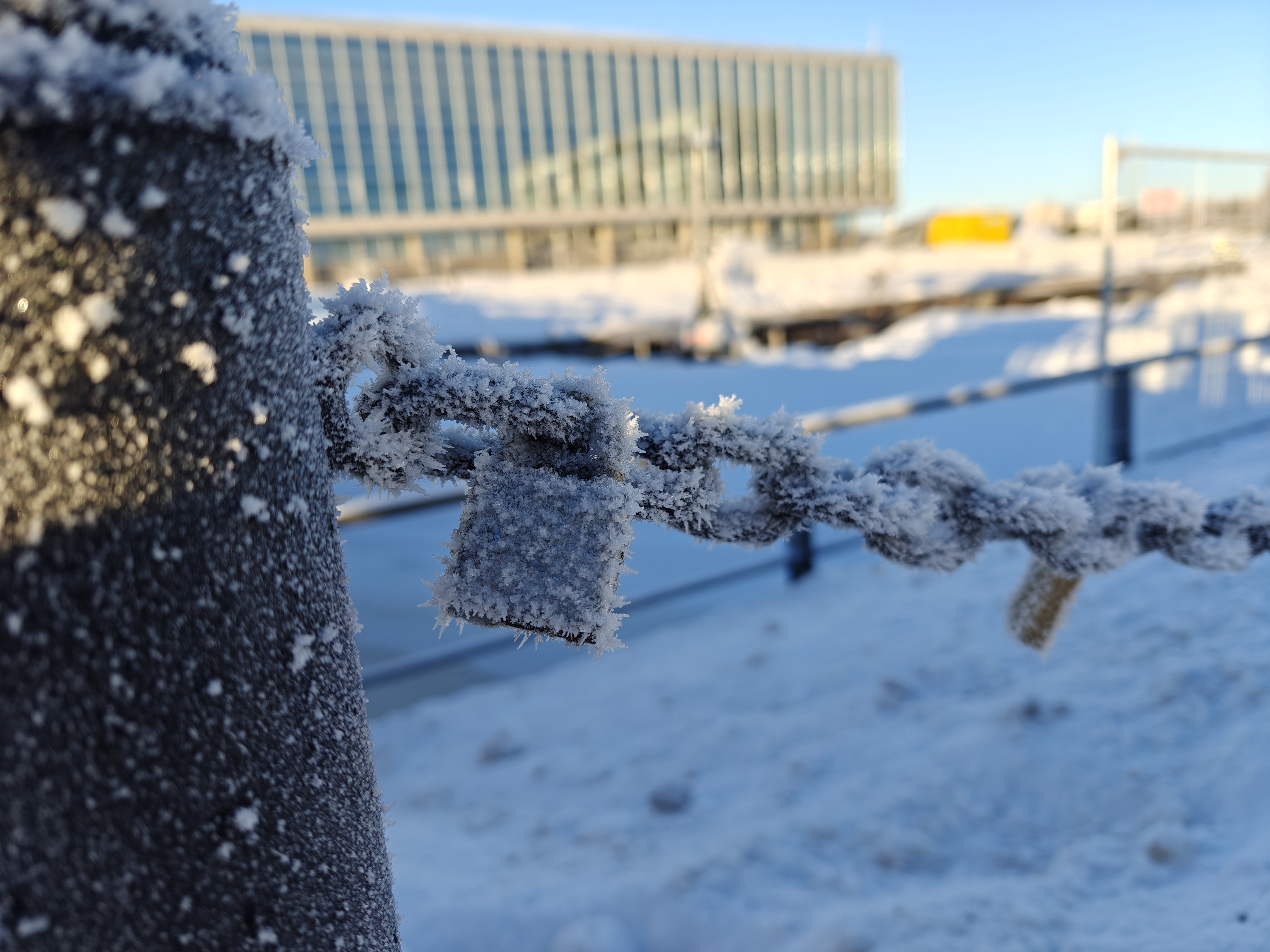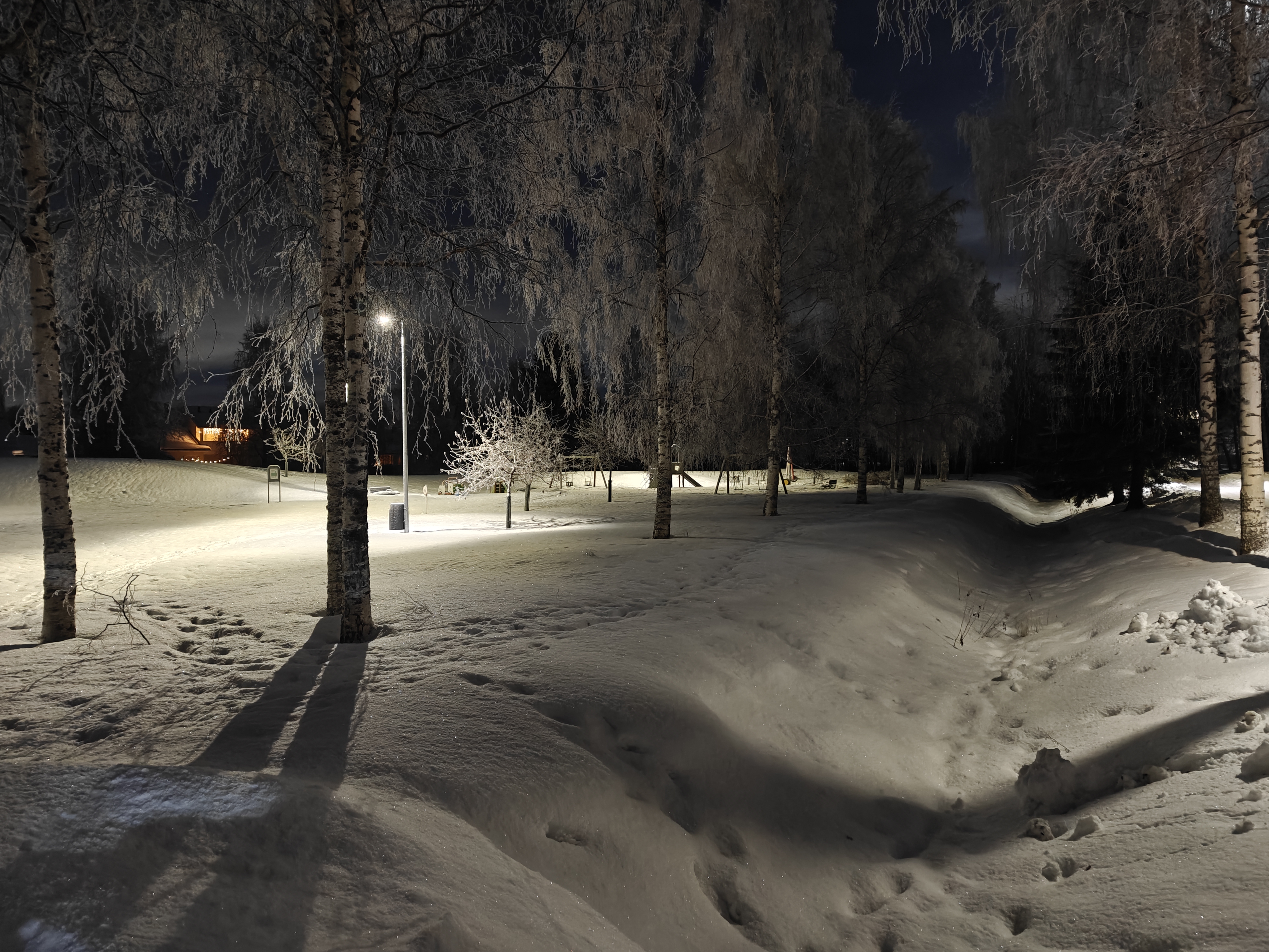 Puhelinkameralle haastavissa talvisissa kirkkaissa auringonpaisteissa kontrasti voi kuitenkin kääntyä turhan voimakkaaksi tuottaen korostetun näköisiä lopputuloksia. Myös valkotasapaino voi samoissa tilanteissa taittaa hieman liian sinertäväksi. Pikselitasolla jälki on hyvää perustasoa, eli terävöitystä on havaittavissa kohtalaisen selvästi, mutta se ei kuitenkaan ole ylilyötyä.