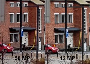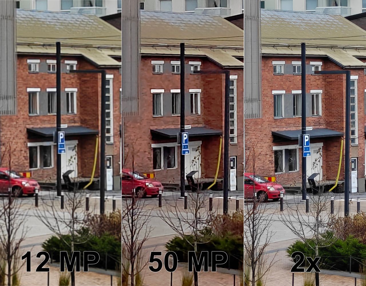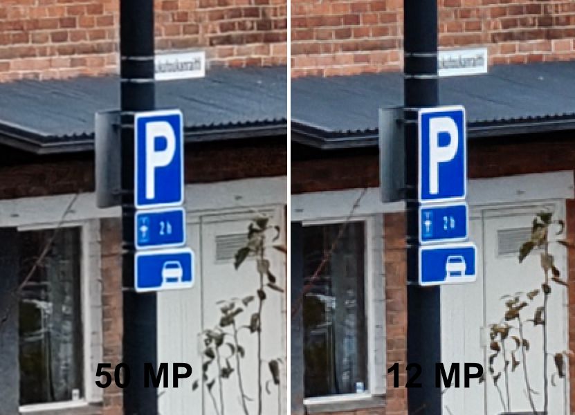Myös ultralaajakulmakameralla voi ottaa täyden 50 megapikselin resoluution kuvia, mutta testiemme perusteella ne eivät tarjoa käytännössä juuri yhtään lisää yksityiskohtia, joten niiden käyttämistä on mahdotonta perustella.