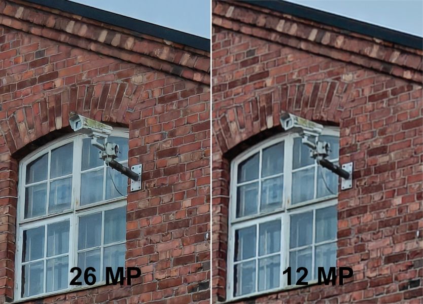 Asetusvalikosta päälle kytkettävissä oleva 26 megapikselin Ultra Clear -tila tuottaa hyvässä valaistuksessa kuvia, jotka sisältävät havaittavasti enemmän yksityiskohtia kuin 12 megapikselin kuvat. Tämä koskee sekä pää- että telekameraa – ultralaajakulmakameralla tila ei ole käytössä. Automatiikka päättää itse missä tilanteissa 26 megapikselin kuvia otetaan, eli toisin sanoen heikommassa valaistuksessa ja jo sisäolosuhteissa resoluutio saattaa laskea automaattisesti 12 megapikseliin. Telekamera todettiin huomattavasti herkemmäksi tiputtamaan resoluution 12 megapikseliin ja tätä havaittiin myös peräkkäin varsin hyvässä valaistuksessa otetuissa kuvissa.