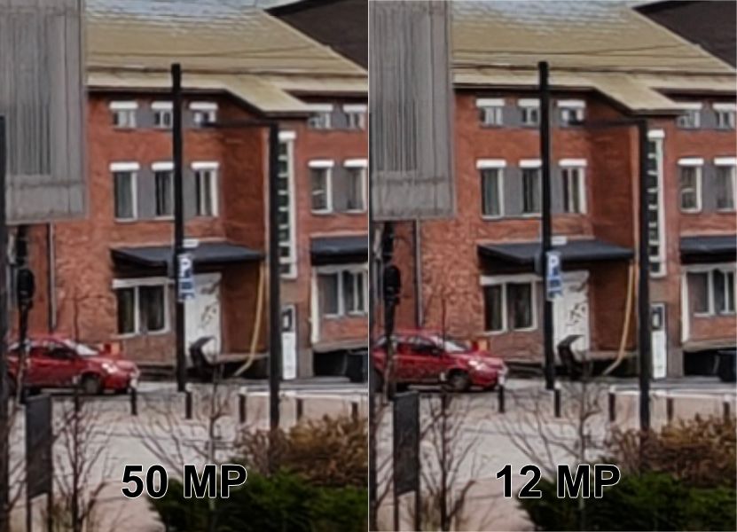 Pääkameralla ottamiemme testikuvien perusteella yksityiskohtien toisto ei ole siinä määrin tarkempaa, että täyden resoluution kuvia kannattaisi ottaa. Lisäksi havaitsimme 50 megapikselin kuvissa värivääristymää etenkin punertavissa sävyissä.