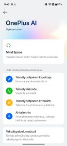 Plus Mind -muistiinpanoavustaja lanseerattiin viime kesänä Nord 5 -mallin yhteydessä, mutta OnePlus 15 on nyt ensimmäinen lippulaivamalli, josta se löytyy heti julkaisussa. OnePlussan käyttämä nimeämispolitiikka on hieman sekava, mutta Plus Mind on itse ominaisuus, joka puhelimen kyljessä sijaitsevaa Plus Key -näppäintä painamalla tallentaa näytön sisältöä Mind Spaceksi nimettyyn sovellukseen. Plus Keytä lyhyesti painamalla ominaisuus tallentaa kuvankaappauksen, pitkällä painalluksella tallentaa äänimuistion ja tuplapainalluksella avaa Mind Space -sovelluksen.