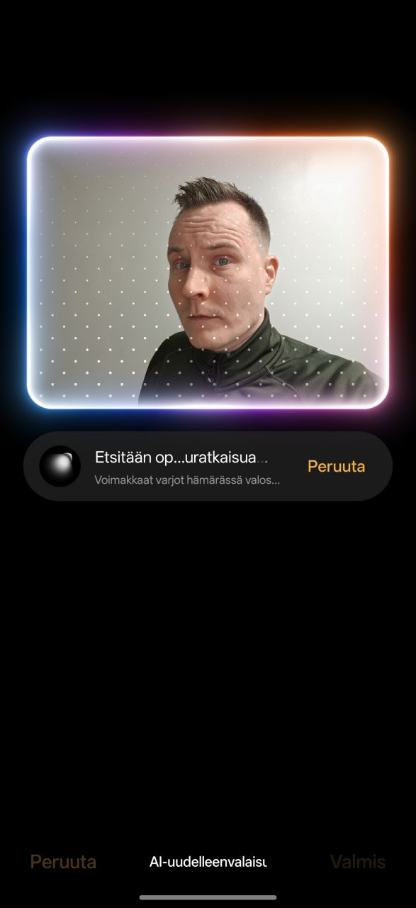 Kuvagallerian tekoälyavusteiset muokkausominaisuudet sijaitsevat selkeästi omaan valikkoonsa sijoitettuna ja uusia ominaisuuksia ovat kuvauskohteen himmeäksi jäänyttä valaistusta useimmissa tapauksissa melko onnistuneen oloisesti korjaava AI-uudelleenvalaisu sekä AI-täydellinen kuva, joka korjaa ryhmäkuvista kiinni jääneet silmät.