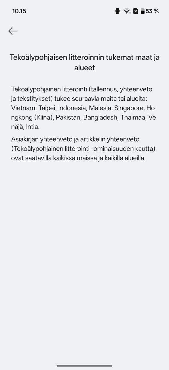• Osa tekoälytoiminnoista ei toimi vielä suomeksi