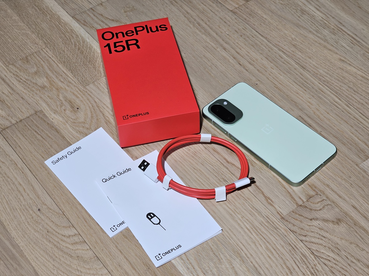 15R:n myyntipakkaus on samanlainen kuin edeltäjämallillakin – pelkistetyn punainen suurin kirjaimin kirjoitetulla puhelimen mallinimellä. Pakkauksesta löytyy itse puhelimen lisäksi OnePlussan tunnusmerkiksi muodostunut punavalkoinen latauskaapeli (USB-A–USB-C) sekä SIM-korttikelkan avaustyökalu ja ohjevihkoset.
