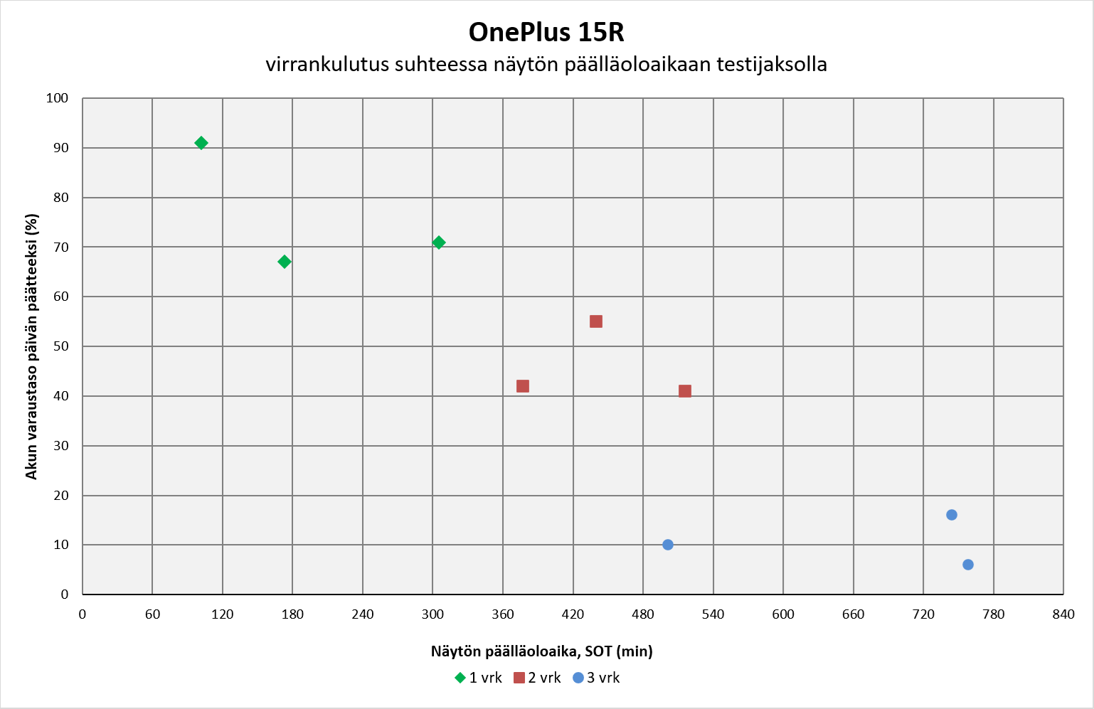 Kokonaisuudessaan OnePlus 15R on varsin laadukas paketti ja monilta osin parannus viime vuoden 13R:ään nähden, mutta ei kuitenkaan täydellinen. Akunkestoa ja suorituskykyä kaipaavalle se on oivallinen valinta, mutta kameraominaisuuksia tai mahdollisimman pitkää käyttöikää painottavan ostajan tulisi harkita myös kilpailijoiden malleja.