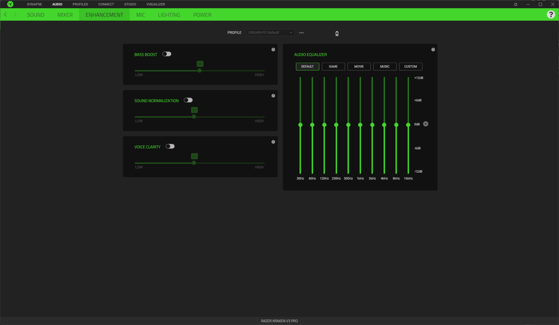 Tietokoneelle Kraken V3 Prot näkyvät vain yhtenä äänikorttina, mikä on 200 euron hintaluokassa pienoinen harmi. Sen myötä kuulokkeet eivät tarjoa valmista vaihtoehtoa esimerkiksi peli- ja keskusteluäänten suhteen määrittämiseen.