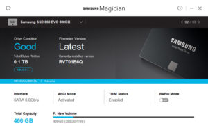Z370-piirisarjalle asennettiin Intelin tuoreimmat piirisarja-ajurit, mutta tulosten kanssa päänvaivaa aiheuttivat Intelin uusimmat Rapid Storage Technology -ajurit (15.9.0.1015). Esimerkiksi AS SSD -testiohjelma tunnisti 860 EVOn 850 EVOna, kaikki testiohjelmat antoivat kirjoitustestin tulokseksi After TurboWrite -nopeutta vastaavia lukemia (300 Mt/s) sekä Samsung Magician- ja Iometer-ohjelmilla mitatut IOPS-lukemat olivat odotettua alhaisemmat.