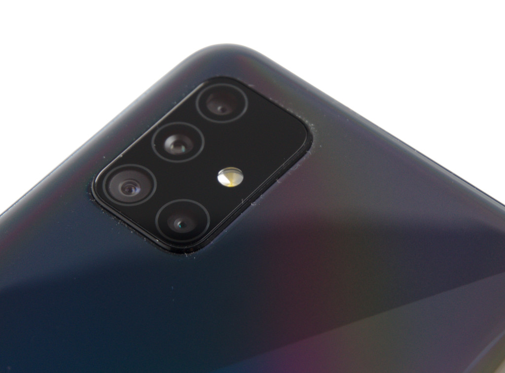 Kamerajärjestelmä itsessään on teknisesti hyvin samankaltainen kuin Galaxy A71:ssä. Kokonaisuus muodostuu edelleen neljästä kamerasta ja LED-salamasta. Ainoa A51:n kalliimmasta sisaruksestaan erottava tekijä on pääkameran tarkkuuden heikennys 64 megapikselin sensorista 48 megapikseliin. Pääkamera käyttää kuitenkin edelleen Quad Bayer -suodatinta luoden täyden resoluution kuvien sijaan 12 megapikselin lopputuloksia. Täyden resoluution kuvien ottaminen on kuitenkin myös mahdollista. Ultralaajakulmakamerana toimii A71:stä tuttu 12 megapikselin sensori jopa 123 asteen kuvakulman tarjoavalla objektiivilla. Myös 5 megapikselin makrokamera ja 5 megapikselin syvyystietojen mittaamiseen tarkoitettu lisäkamera ovat speksien valossa A71:stä tuttuja.