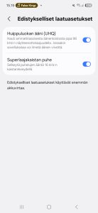 Superlaajakaistan puhe -tila selkeyttää asetusruudun mukaan ääntä 16 kHz:n kaistanleveydellä. Käytännössä ääni vaikuttaisi pykälän selkeämmältä ja suurimpana erona sisätilan ääninäyte muuttui huomattavan laadukkaaksi hävittäen jostain syystä huoneen kaikujakin voimakkaammin. Ulkoilmassa tuulen ääniä tila ei kuitenkaan poista, vaan pyöräillessä taustahumina on edelleen huomattavan voimakasta.