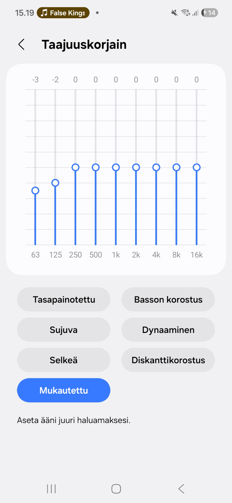 Kokonaisuudessaan Buds4 Proiden äänimaisema on jo vakiona nappikuulokkeiden parempaa päätä ja jopa erinomainen, jos hakusessa on korostunut basso. 9-kanavaisen taajuuskorjaimen kanssa bassoa oli myös helppo laskea hieman, minkä jälkeen kokonaisuus soi omaan korvaanikin todella hyvin.
