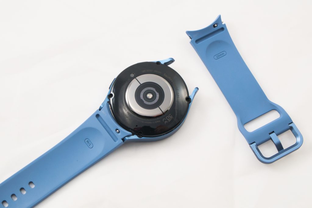Taustapuolella Galaxy Watch5:ssä on käytännössä viime vuodesta tuttu BioActive-sensorikattaus, joskin pohja on muotoiltu uusiksi, minkä myötä sensoreiden ja ranteen välisen kontaktin pinta-alaa on kasvatettu. Paremman kontaktin myötä sensorien tarkkuus on Samsungin mukaan entistä parempi. Ainut uusi sensori kellossa on ranteen lämpötilaa mittaava anturi.