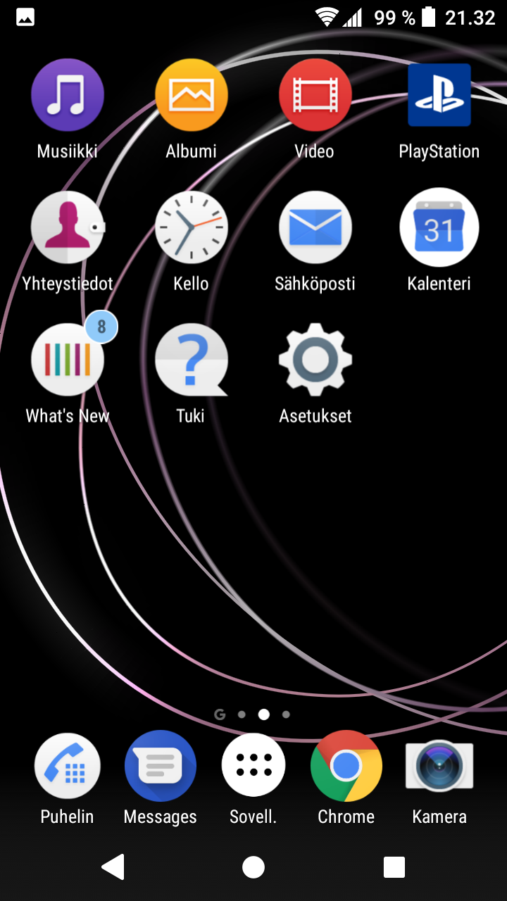 Mutta koko on juuri puhelimelle passeli, toimii tosi jouhevasti, sormenjälkilukija toimii tosi hyvin. Ulkonäköä saa kustomoitua melkoisesti oman maun mukaan teemoilla. (Teemoja toivoisi suoraan puhtaaseen Anteroonkin)
