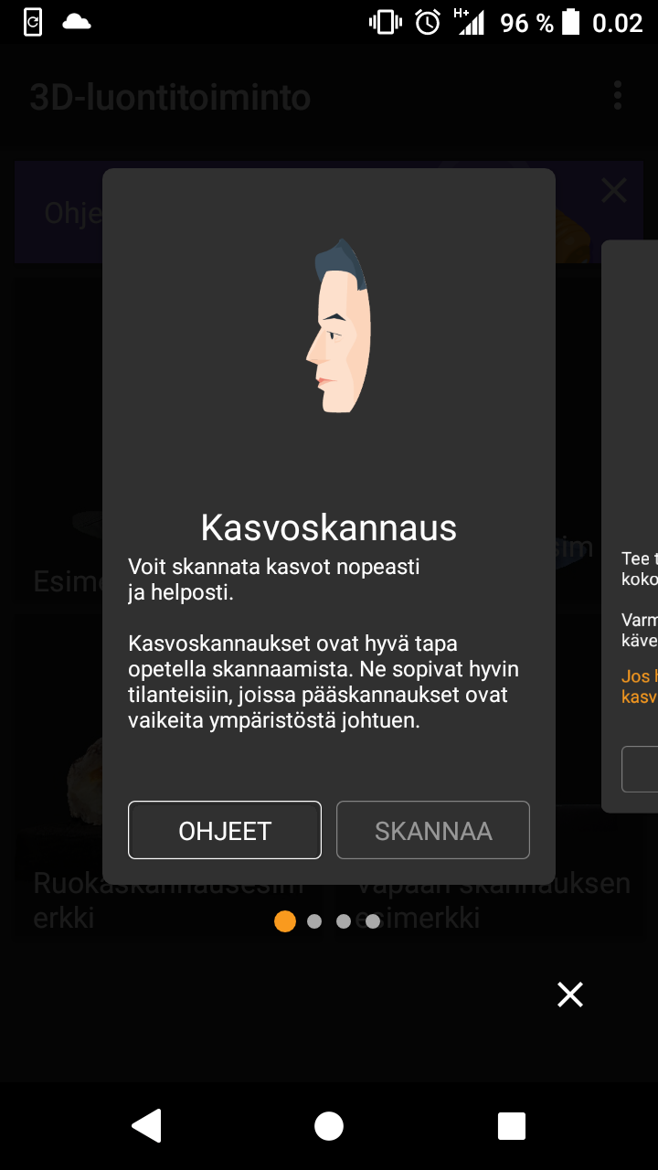 Skannauksessa on neljä vaihtoehtoa, jotka ovat Kasvoskannaus, Pääskannaus (360 astetta vrt. kasvojen 180), Ruokaskannaus sekä Vapaa skannaus. Suoraan sovelluksesta voi tilata 3D-mallinnoksia joko Shapeways- tai Sculpteo-palveluista.