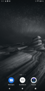 Xperia XZ3 näytön alapuolelle jäävä reunus on nyky-standardeilla varsin leveä, mutta siihen ei ole sijoitettu navigointipainikkeita, vaan ainoastaan Sonyn oma logo. Navigointipainikkeiden sijainti näytön alaosassa ei ole kustomoitavissa, eli paluunäppäin sijaitsee aina vasemmalla puolella.