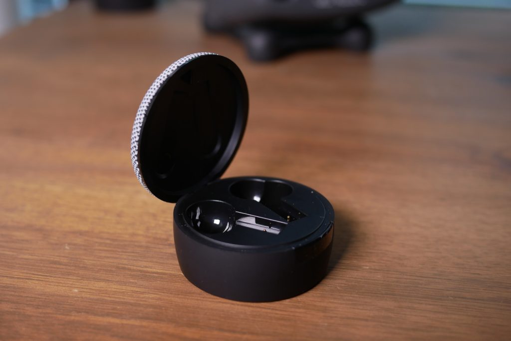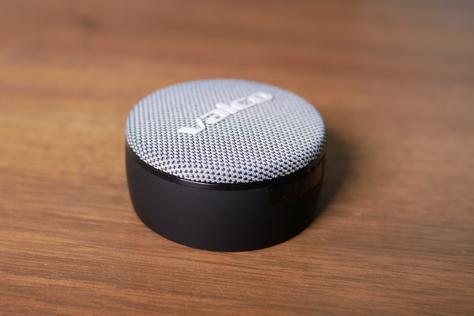 Kuulokkeiden latauskotelo Valcossa on kohtalaisen tyylikäs kannen kangaspinnoitteen kanssa. Pyöreän latauskotelon halkaisija 55 millisenä on myös hyvän kokoinen. Miinuksen kotelo ansaitsee kuitenkin paksuudestaan, joka on paksuimmalta kohdaltaan kolmisen senttiä. Siten kotelo on pykälän paksumpi kuin useimmat kilpailijansa. Kotelo latautuu niin USB-C-liitännällä kuin myös langattomasti ja pienenä mukavana lisänä kotelon etulaidassa on indikaattoriledit, jotka näyttävät kotelon akun tilan.