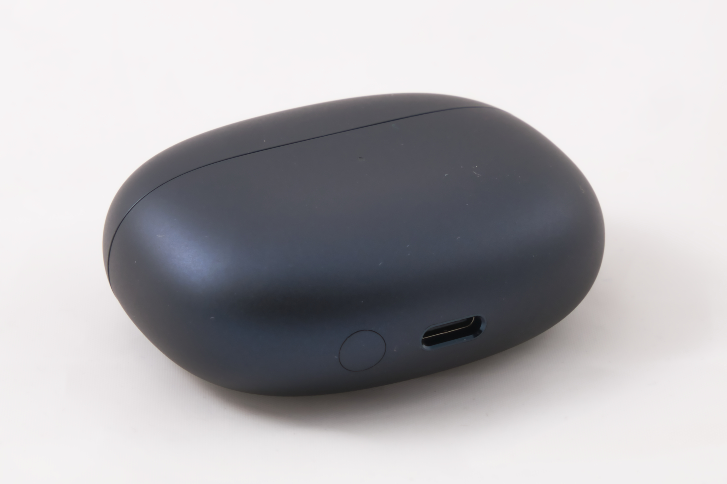 Latauskotelo on pinnaltaan sileä ja kohtalaisen liukas sekä muodoiltaan pyöristetty, minkä myötä se sujahtaa taskuun näppärästi. Ulkomitat kotelossa eivät ole aivan pienimmästä päästä, mutta liian suureksikaan sitä ei voi kuvailla. Kotelo on ladattavissa niin USB-C-kaapelilla kuin myös langattomasti Qi-latauksella.