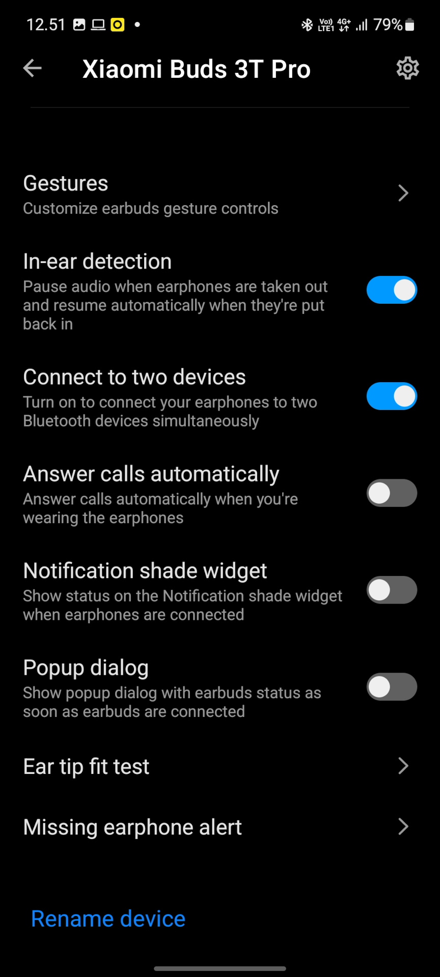 Mielenkiintoisena ominaisuutena Bluetoothin audiokoodekkia valitessa tarjolla ovat vain SBC- ja AAC -koodekit ja LHDC:n päälle laittaminen löytyy omana asetuksenaan alempana listauksessa. Valitettavasti kuulokkeille ei ole tarjolla minkäänlaista taajuuskorjainta, automaattista taajuuskorjainprofiilin luontia tai edes esiasetettuja taajuuskorjainprofiileja, eli kuulokkeiden ääntä ei käytännössä ole valmistajan omalla ohjelmistolla mahdollista muovata.