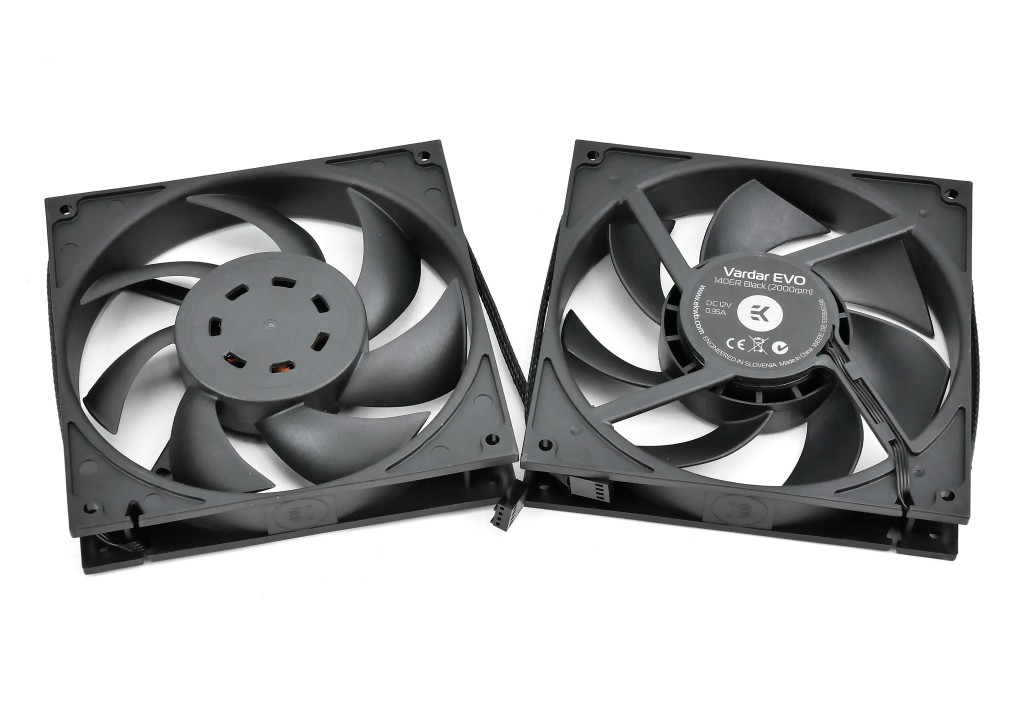 Tässä vertailussa käytimme luonnollisesti vain vertailucoolereiden 280 mm jäähdyttimiin sopivaa 140 mm NF-A14 2000 PWM –mallia, joka on speksattu 500-2000 RPM pyörimisnopeusalueelle, 107,4 CFM maksimi-ilmavirralle, 4,18 mm H2O maksimipaineentuotolle sekä 31,5 dBA maksimimelutasolle. Mallin lapamuotoilu sekä paineentuotto ja ilmavirta sopivat hyvin jäähdyttimien ja jäähdytysrivastojen kanssa käytettäväksi.