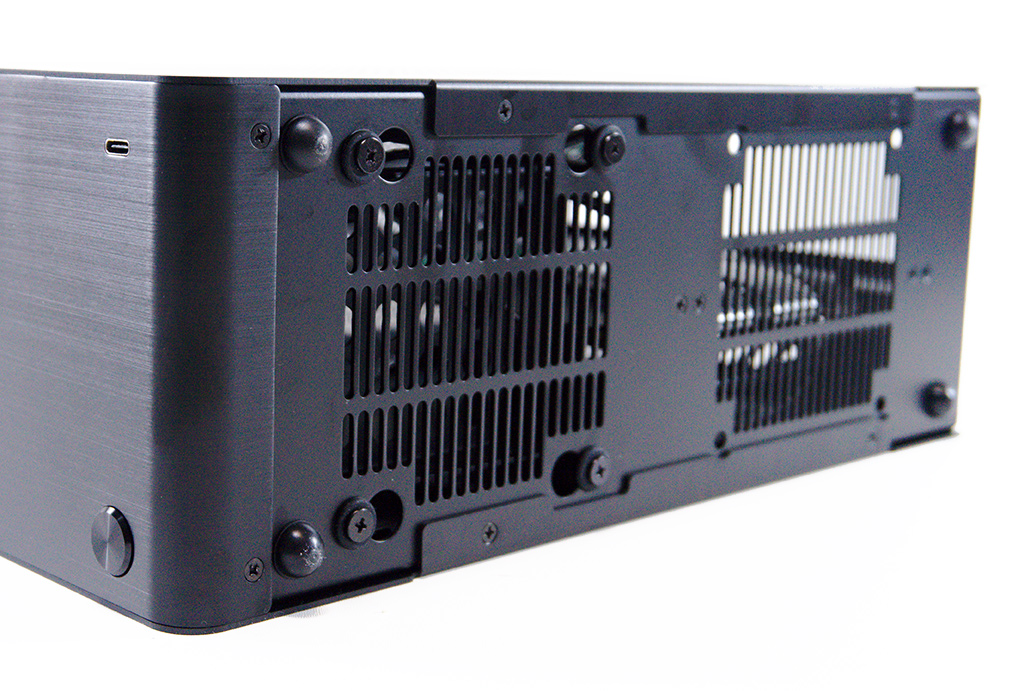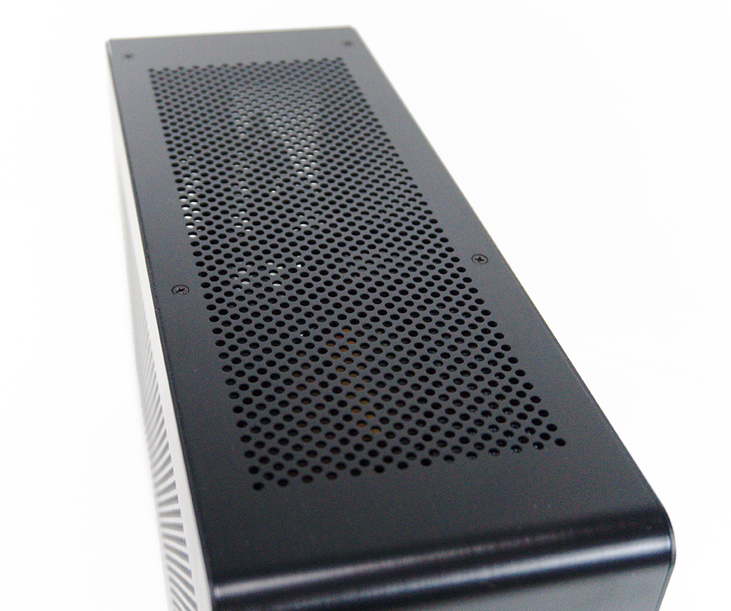 Sekä katto, että kylkipaneelit ovat A4-SFX:ssä varsin kattavasti rei’itettyjä, mikä helpottaa pienessä kotelossa ilman liikuttamista. Kotelo myös toimitetaan täysin ilman tuulettimia.