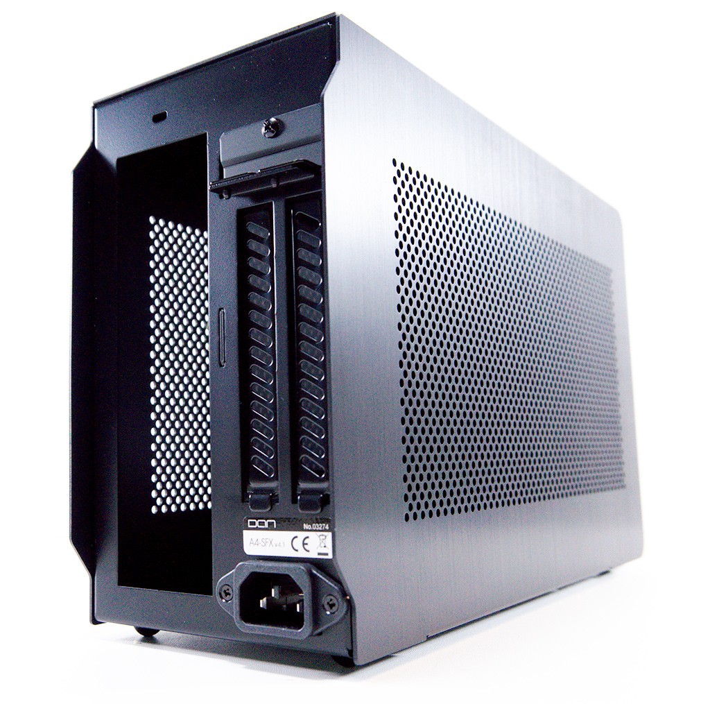 Ulkoisesti A4-SFX:stä erottuu ensimmäisenä kotelon koko. Vain 7,2 litran tilavuutensa myötä A4-SFX onkin tämän vertailun koteloista pienikokoisin. Ulkomitoiltaan (200 x 112 x 317 mm, K x L x S) kotelo ei olekaan juuri suurikokoista näytönohjainta suurempi muuten kuin leveydeltään. Kotelossa ei olekaan juuri ylimääräistä tilaa, vaan lähes kaikki tila on käytettävissä komponenteille, kuten myöhemmin huomataan.