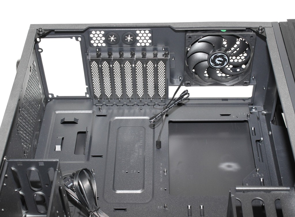 Katossa on kiinnityspisteet kahdelle 120 tai 140 mm tuulettimelle ja niiden sijaintia on mahdollista hienosäätää pituussuunnassa. Pakkauksesta otettaessa katon tuuletinpaikkoihin on kiinnitettynä kuvassakin näkyvä metallikehys nestejäähdytyskomponenttien kiinnittämiseen.