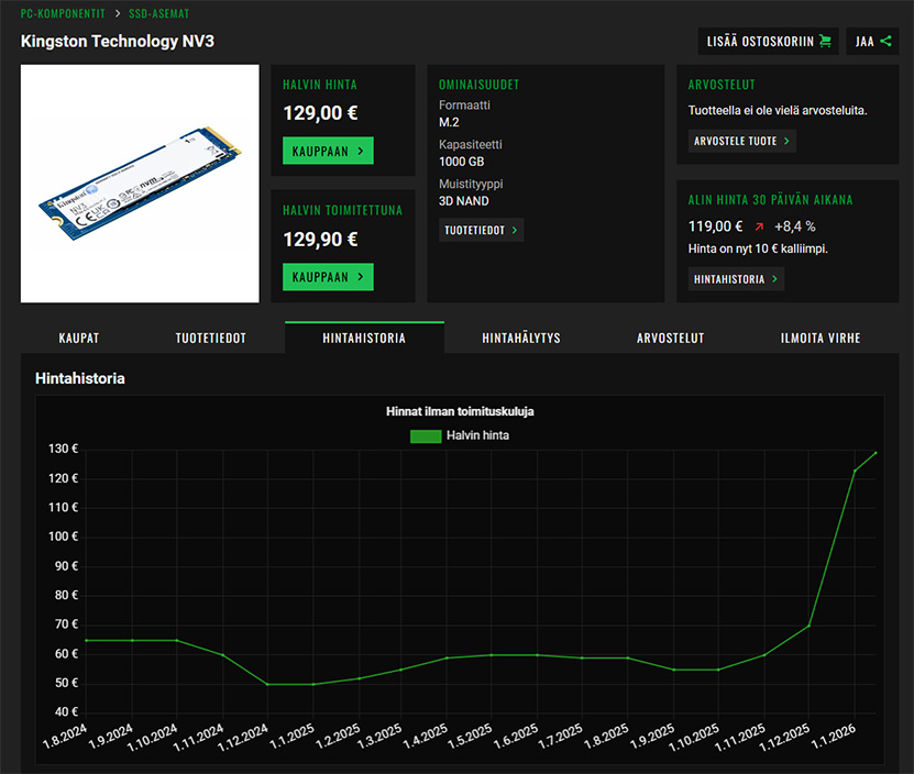 Keskusmuistin hinta nousi pilviin, nyt vuorossa SSD – Näkyy jo Suomen hinnoissa