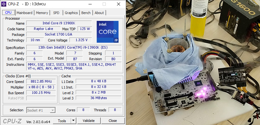 Huippuylikellottaja elmor viritti Core i9-13900K:n yli 8,8 GHz:n ennätyskellotaajuuteen