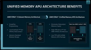 AMD Instinct MI300 -nimellä julkaistava CDNA 3 -piiri tullaan valmistamaan 5 nanometrin valmistusprosessilla 3D-paketointia hyödyntäen. Aiempien CDNA-arkkitehtuurien laskentasiruista poiketen CDNA 3:ssa samasta paketoinnista tulee löytymään sekä laskenta- että prosessorisiruja HBM-muistien kera ja samalla useampaan kertaan haudattu ja henkiin herätetty APU-termi tekee paluun parrasvaloihin.