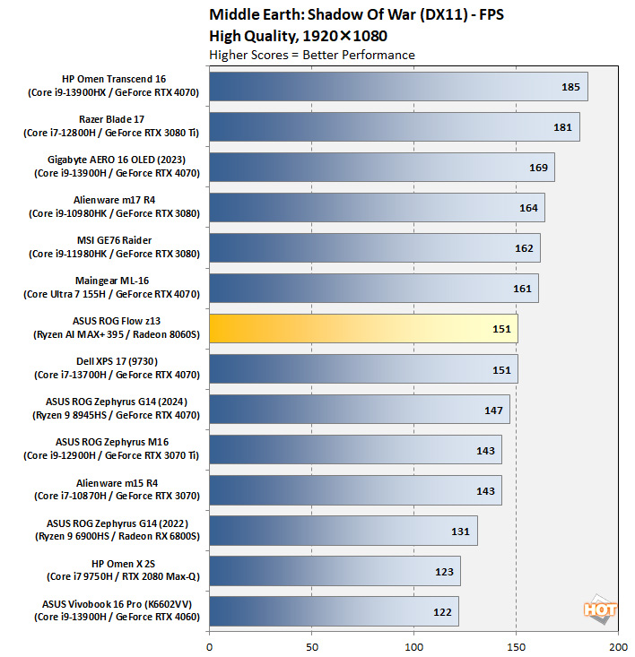 HotHardwaren testissä Ryzen AI Max+ 395 -huippumallilla varustettu Asus ROG Flow z13 kilpailee hyötyohjelmissa testistä riippuen joko suvereenissa johdossa tai vähintään kärkipaikoilla, eikä kannettavan siirto virtajohdon päästä akun perään vaikuta syövän suorituskykyä kilpailijoita enempää. Integroituja grafiikkaohjaimia testatessa se on luonnollisesti aivan omassa luokassaan. Todellinen kilpailu löytyykin kannettavista, joissa on erillinen näytönohjain. HotHardwaren testeissä se sijoittuu AMD:n lupausten mukaisesti suurin piirtein GeForce RTX 4070 -mobiilinäytönohjaimen tasolle; osa RTX 4070 -kannettavista peittoaa sen ja osa häviää sille. Tämä selittyy helposti kannettavien vaihtelevilla TDP-arvoilla.