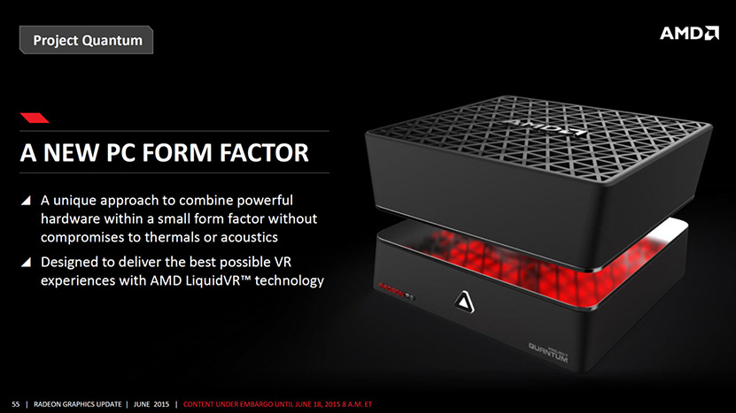 AMD esitteli pienoiskokoisen Project Quantum -minitietokoneen alun perin jo vuonna 2015. Projekti ei ikinä poikinut varsinaisesti myyntiin tulleita tietokoneita, vaan AMD kuvaili sitä esimerkiksi automaailmasta tuttujen konseptiautojen kaltaiseksi projektiksi.