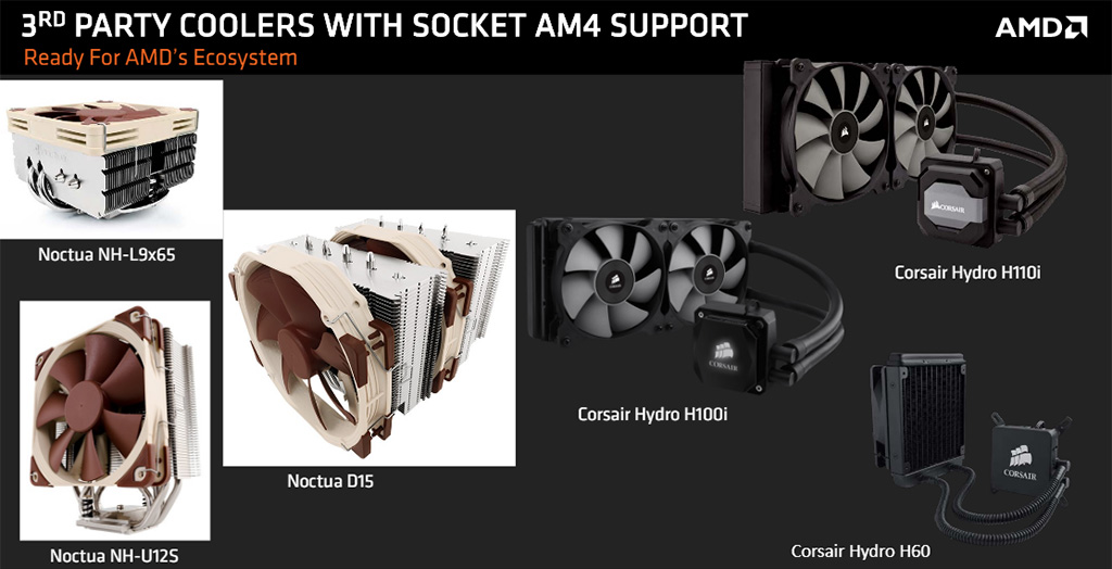 Lisäksi AMD odottaa, että julkaisun yhteydessä saatavilla tulee olemaan noin 50 Ryzen-prosessoreita tukevaa AM4-kantaista emolevymallia ja kaikki viime vuonna julkaistut AMD-yhteensopivat jäähdytysratkaisut tulevat olemaan yhteensopivia myös Ryzenin kanssa.