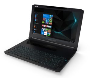 Acer on puolestaan nimennyt Max-Q-kannettavansa Predator Triton 700:ksi. Kyseessä on Asuksen tapaan 15,6-tuumainen kannettava, mutta ulkomitat ovat aavistuksen suuremmat (paksuus 18,9 mm, paino 2,6 kg). Osasyynä tähän saattaa olla taustavalaistu ja ohjelmoitava mekaaninen näppäimistö. Kalleimman version rautapuolelta löytyy mm. Core i7-7700HQ-prosessori, Geforce GTX 1080 -näytönohjain, 16 Gt DDR4-2400-muistia sekä 512 Gt:n SSD-asema. Koneen jäähdytysjärjestelmä hyödyntää kahta tuuletinta ja viittä lämpöputkea ja käyttäjä pääsee ihailemaan sitä näppäimistön yläpuolelle sijoitetun Gorilla Glass 5 -ikkunan läpi. Samaan lasipintaan on myös integroitu kosketuksen tunnistus, jota voidaan hyödyntää hiirenä.