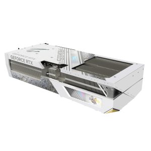 Aorus GeForce RTX 4080 Super Xtreme Ice 16G puolestaan lupaa erottua joukosta jopa 2700 MHz:n GPU-kellotaajuudella, minkä kerrotaan olevan korkein tällä hetkellä markkinoilla olevista RTX 4080 Supereista. Näytönohjaimen Windforce-coolerissa käytetään kolmea 110 mm:n Bionic Shark -evin varustettua tuuletinta, kookasta höyrykammiota sekä tietenkin lämpöputkia, jotka levittävät lämmön GPU:lta läpi koko alumiinirivaston. Näytönohjaimen kyljestä löytyy myös näyttö, johon saa esiin haluamiaan tietoja tietokoneesta tai vaikka kissavideon.