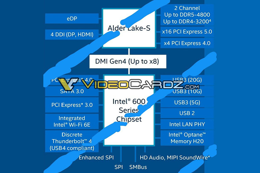 On mahdollista ja jopa todennäköistä, että LPDDR-muistituet on rajoitettu mobiilivariantteihin, sillä toisessa Alder Lake-S -malleja spesifisti käsittelevässä diassa mainitaan prosessorille DDR4-3200- ja DDR5-4800 -tuet. Lisäksi prosessorissa mainitaan olevan 16 PCI Express 5.0 -linjaa, neljä PCI Express 4.0 -linjaa ja kahdeksan DMI Gen4 -linjaa (PCIe 4).
