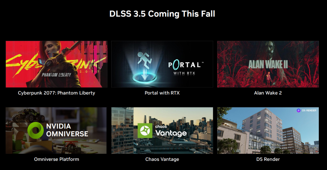 Syksyllä ajuripäivityksen mukana julkaistava DLSS 3.5 on tuettuna alkuun Cyberpunk 2077- , Portal with RTX- ja Alan Wake 2 -peleissä.