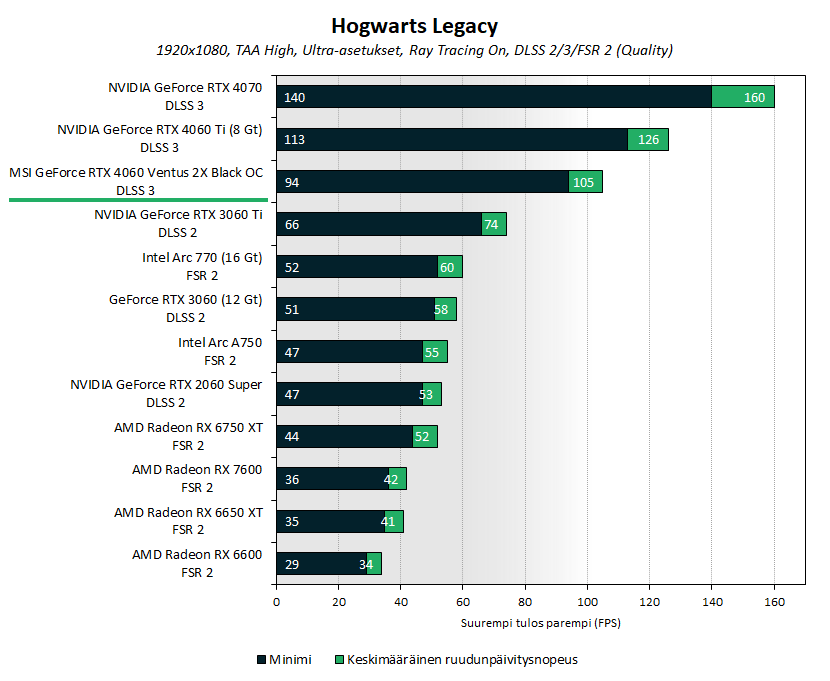 4060 on RTX 40 -sarjan heikoin ja 100% Full HD -näytönohjain ja se ei kyllä missään tilanteessa kyykkää edes parhailla kuvanlaatuasetuksilla peleissä 20-30 fps. Nää on täysin tuulesta temmattuja skenaarioita, kun tarvittaessa voidaan ensin ottaa käyttöön DLSS 2 ja siihen päälle DLSS 3.