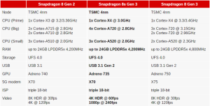 Yhdysvaltalainen elektroniikkajätti Qualcomm on julkistanut uuden Snapdragon 8s Gen 3 -järjestelmäpiirin, joka on viime syksynä julkaistun Snapdragon 8 Gen 3 -lippulaivamallin astetta edullisempi ja hieman karsittu sisarmalli. Käytössä on samat Cortex-ytimet, mutta kellotaajuudet ovat hieman alemmat, ja esimerkiksi 8K-videokuvauksen tuki on tippunut pois ominaisuuslistalta.